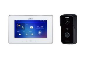 Základní sestava s možností rozšíření na více účastníků. Táto varianta je drátová i po WIFI. Při každém zazvonění pořídí foto kdo zvonil u dveří. Dále umí toto zařízení odklonit hovor na váš mobilní telefon. Na obrazovce zle i sledovat aktuální záběr kamerového systému.
